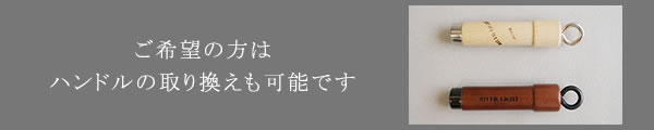 ご希望の方には別シリーズの「ルーツ・白木ハンドル(無塗装)」または「茶色ハンドル(塗装あり)」に取り換えも可能です。 ご注文時、備考欄に希望のハンドル名をご記載いただければ、こちらでお取替えいたします。その場合、箱は極JAPANの箱になりますのでご了承くださいませ。