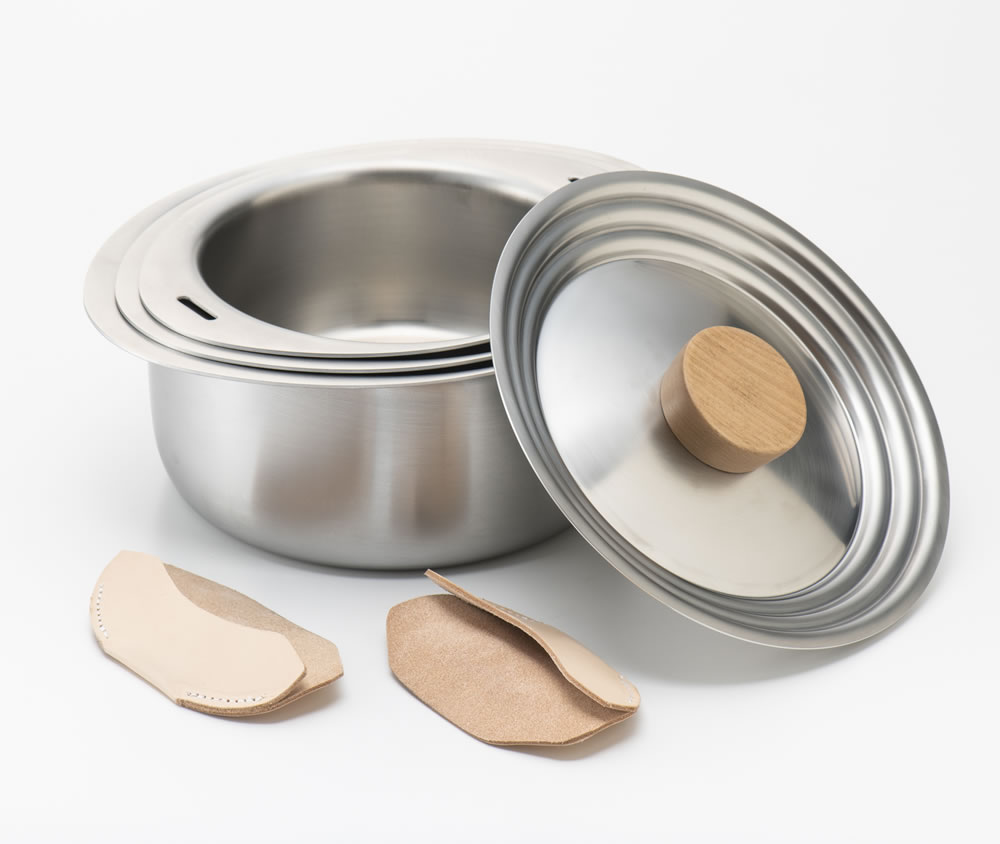 ハンドルは着脱できるので、入れ子にして収納できます。 本体鍋は一枚板でお手入れがしやすいです。 日常使いに相応しい重さで美味しく調理ができるように設計されています。 |