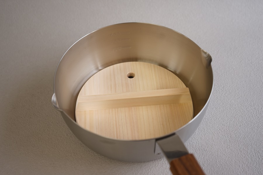 樹脂製やシリコーン製の落し蓋が出回っていますが、木製の落し蓋には理があります。