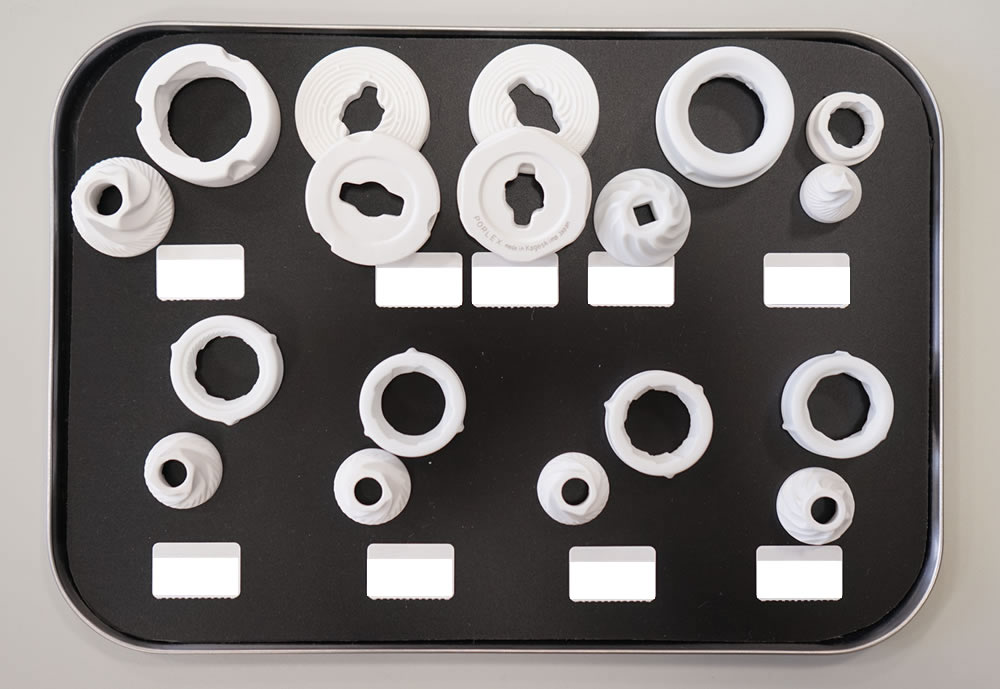 セラミックの独自の成形技術によって、さまざまな刃が開発されてきましたが、 その食材にあったものが、それぞれに開発されています。 胡椒、 ゴマ、 珈琲、 お茶のミルをその場で、実際に挽かせて頂きました。