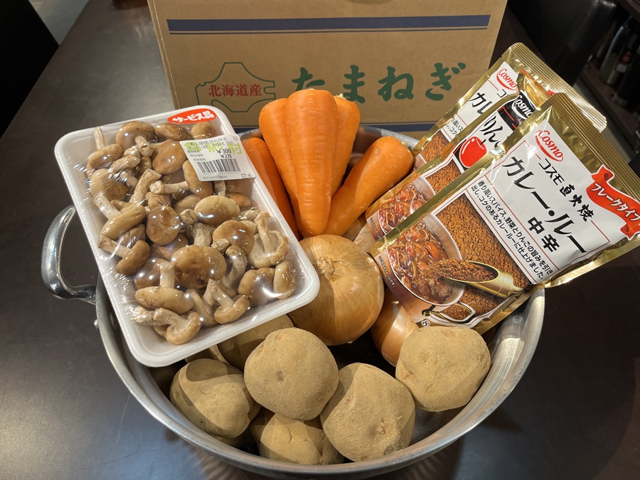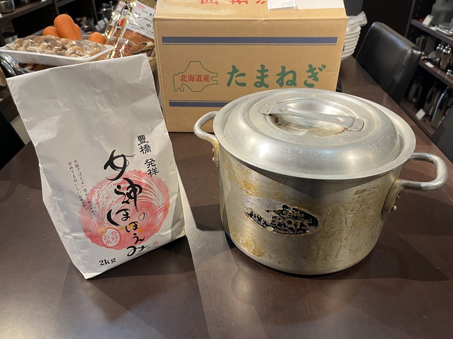 さて、そのお礼を込めた集まりで、タイムリーに中尾さんから玉ねぎとジャガイモが届きました。 その中尾さんのアルミのお鍋は、プロが使う道具でもあり、素材はもちろん、厚みや形状も考慮されて美味しく調理ができます。 今回は、中尾アルミ打出料理鍋33cmでカレーを10人分を想定して作りました。そこそこに厚みもあるのです。 また、キングポット半寸胴鍋24cmでは、1.5升(2s)の白米を炊いてみました。こちらも厚みはあるので炊飯にも相応しいです。