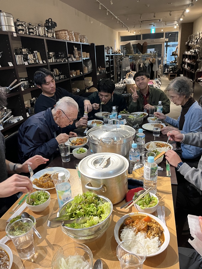 半寸胴鍋24cmでお米2s、料理鍋33cmでカレー10人分ばっちりでした。やはり多めに作ると美味しくなります。 ほぼ完食となりました。このように高齢者と若者が向き合って食べることは、当店の目指しているものです。 中尾アルミのお鍋とともにこのような光景を少しづつ広げて、社会課題に貢献できる商売を目指して参りたいです。 来月は中尾アルミ企画展もございますので、皆さんも是非、 中尾アルミのお鍋を見直して下さい。そこに幸せも待っていると信じます。