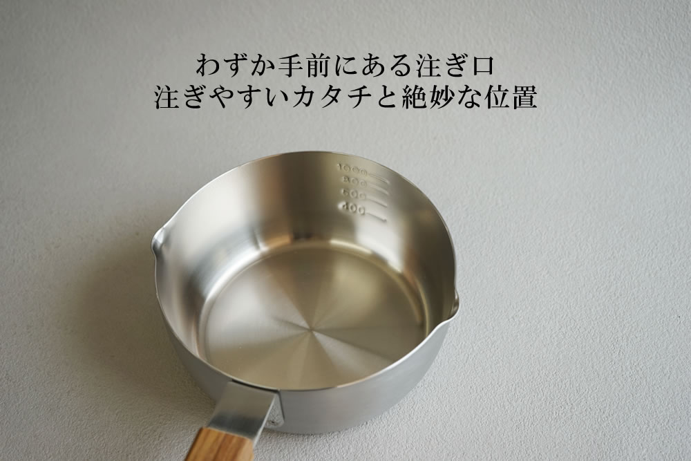 注ぎ口の絶妙な位置など、よくよく考えられた雪平鍋です。