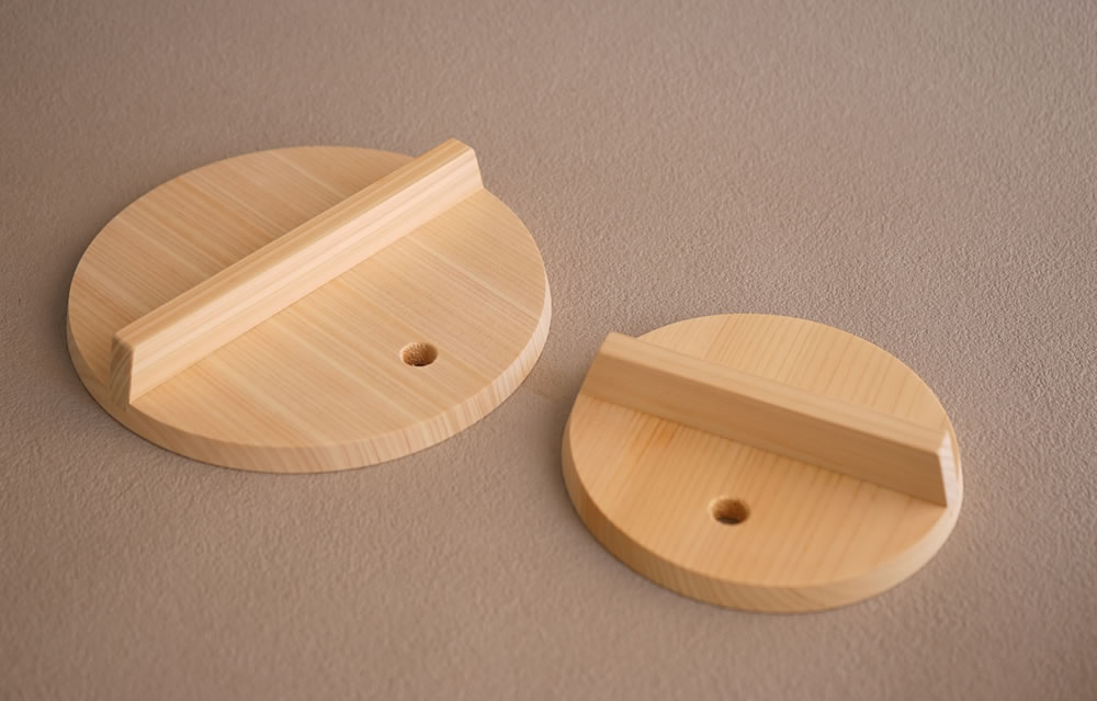 煮崩れを防ぎ、お料理をムラなく均等に煮上げます。水に強いサワラ材を採用。