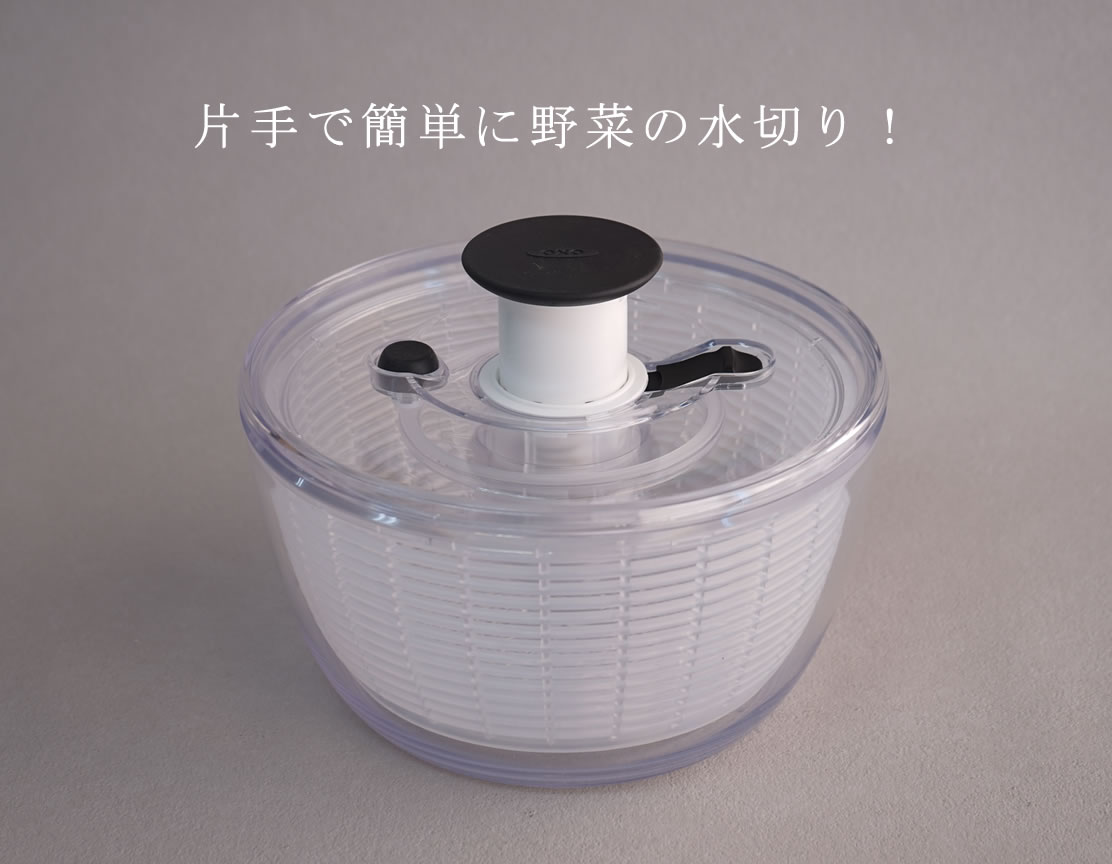 サラダを美味しく!ノブを押すだけで簡単に野菜の水切りができます。 透明蓋で中身が見えて、蓋のお掃除もしやすく工夫されています。 フラットフタですっきり収納!