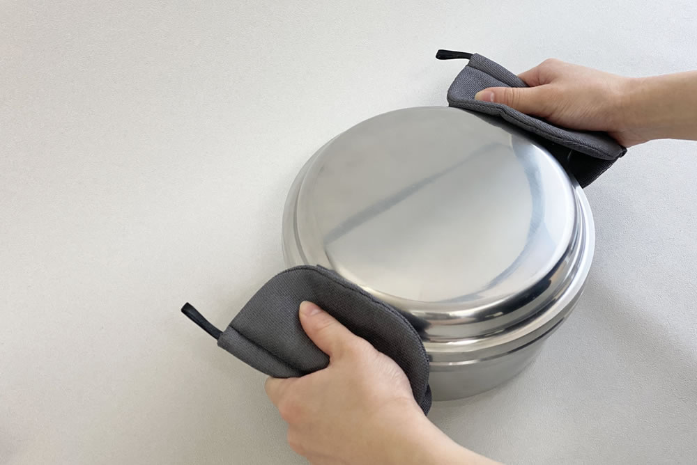 今までは持ち手にキッチンクロスを覆ってお鍋やフタを持ち上げていましたが、少しの手間でした。