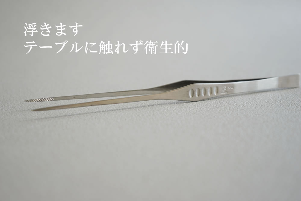 その先端部はゴマ粒ほどの細かなものでも掴めるくらいの極細で、今なお繊細な日本料理の盛り付けに欠かせない道具になっています。