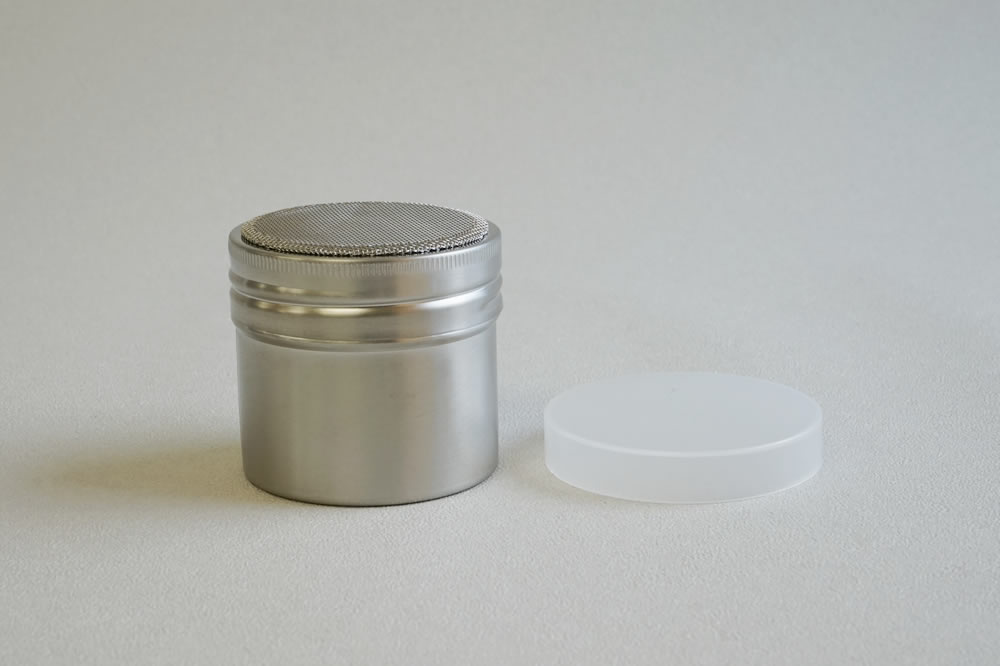 手の平サイズできれいな作りの保存缶です。 75mlと小容量のため、調味料を使いきりやすく、新鮮に使うことができます。 穴のある「調味缶」には胡椒や顆粒だし、スパイスなどに。メッシュ状の「粉もの缶」には片栗粉や小麦粉、粉砂糖などに。 ついつい袋のまま使ってしまう調味料ですが、 専用缶があれば、無駄に使うこともありませんし、まわりを汚さず気持ちよく使えます。 「調味缶」と「粉もの缶」とセットでお使いいただくとキッチンもきれいにまとまります。