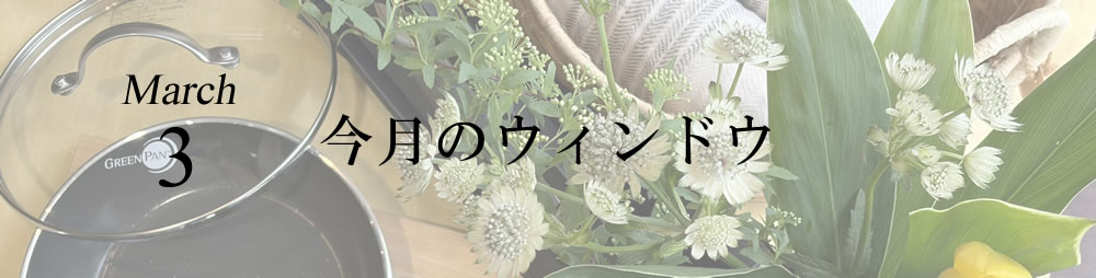 今月は新生活の料理道具にズームアップ! お料理がはじめての方でも使いやすい道具たちをディスプレイ。 機能性、実用性、デザイン性、お料理が楽しくなるアイテムをご紹介してまいります。