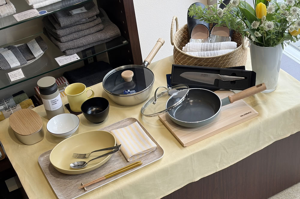 新しい生活の中で、小さなうれしいをたくさん見つけてほしい、そんな思いで選んだ道具をディスプレイしました。