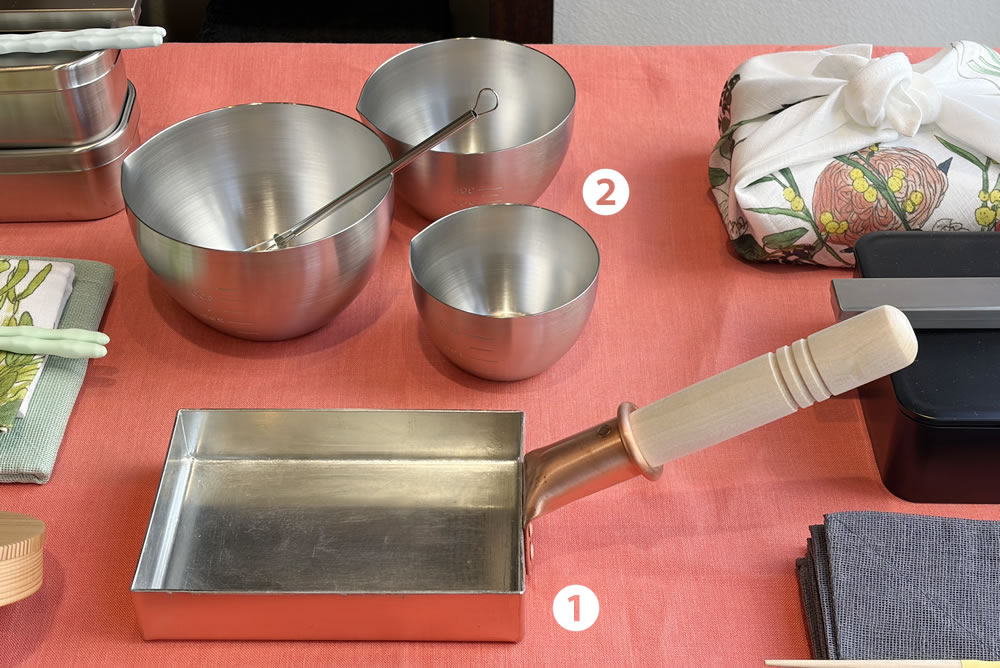 お弁当と言えば「たまご焼き」。角型のたまご焼き器で作る卵焼きは美しい。